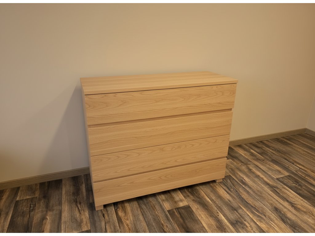 Čtyři prostorné zásuvky poskytují velkorysý prostor pro přehledné uložení oblečení, textilií i osobních věcí. Frézované úchyty nenarušují celistvý vzhled čel a umožňují komfortní otevírání. Plnovýsuvy s tlumeným dovíráním zajišťují tichý, plynulý chod a vysoký uživatelský komfort při každodenním používání.