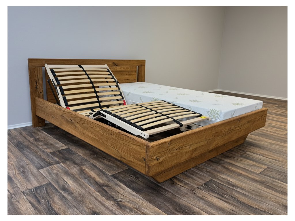 Transparentní povrchová úprava nechává vyniknout přirozenou kresbu dubového masivu a podtrhuje jeho exkluzivní charakter. Masivní dřevo dodává posteli hloubku, strukturu a přirozenou eleganci, která odolává vlivům času. Hlavové čelo poskytuje pohodlnou oporu při sezení a zároveň dotváří harmonické proporce celé konstrukce.