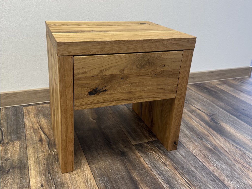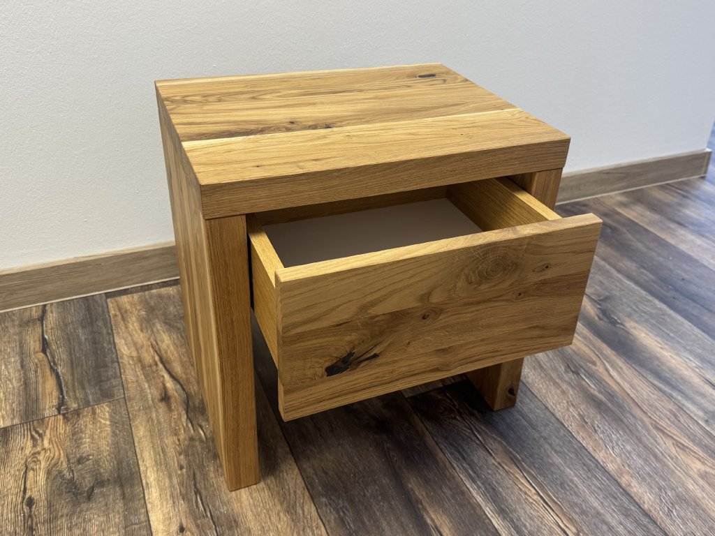 Noční stolek Ametyst je praktickou volbou pro ty, kteří hledají funkční doplněk z masivu, jenž ladí s postelí a zároveň obstojí jako samostatný kus nábytku.