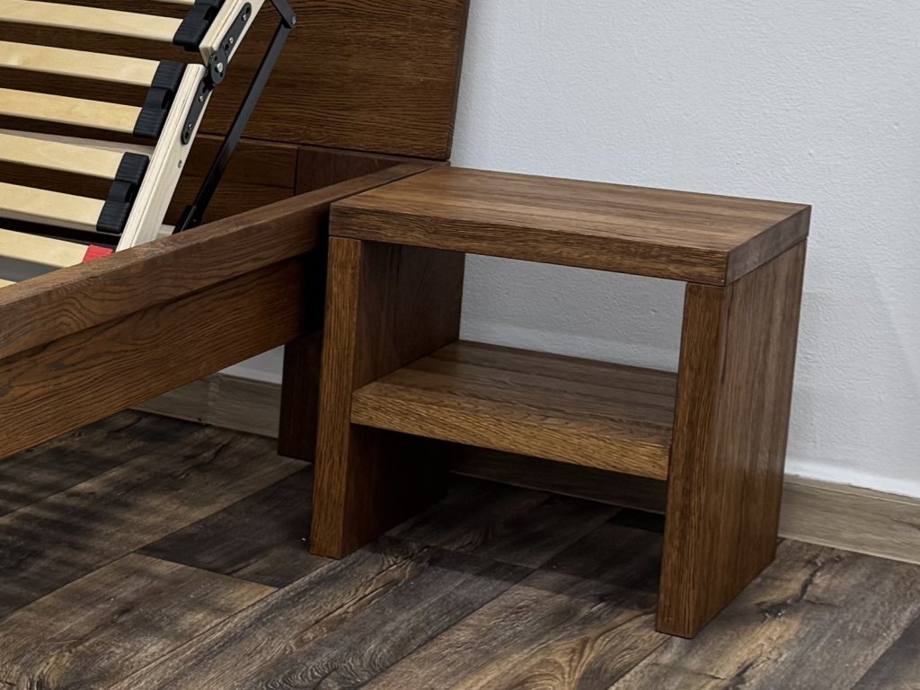 Noční stolek Smaragd je vhodnou volbou pro ty, kteří hledají jednoduchý, elegantní noční stolek z masivu co ladí s postelí.